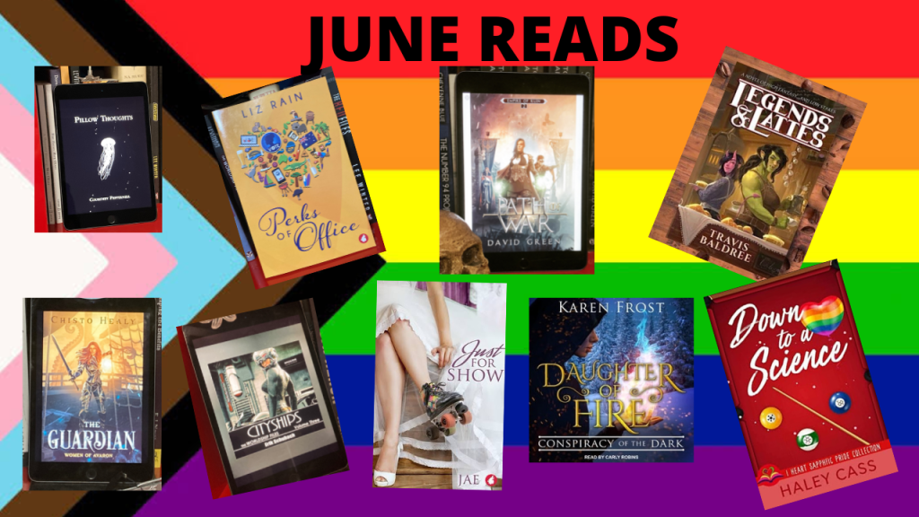 9 books for June, all with Sapphic protagonists – I got a mix of fantasy, sci-fi, romance, and poetry. Pretty happy with that.